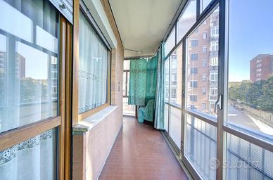 Luminoso appartamento tre arie con ingresso, soggiorno, cucinotto, due camere, bagno, balcone e grande terrazzo verandato (regolare), al primo piano di stabile signorile rivestito in mattoni paramano, realizzato nel 1968 e dotato di abitabilità/agibilità. L'appartamento è esposto ad Est, Sud ed Ovest e risulta ben tenuto in quanto sono state rinnovate alcuni anni fa la pavimentazione in ceramica e quella in palchetto, i serramenti esterni sono molto recenti e ad alte prestazioni energetiche ed acustiche, l'impianto elettrico è in buone condizioni. Il riscaldamento e la fornitura di acqua calda e fredda sono centralizzate con termovalvole e TELERISCALDAMENTO, le spese condominiali sono contenute ed ammontano a circa euro 800/anno ma sono ulteriormente scontate di circa euro 200 grazie all'affitto della portineria e dell'antenna sul tetto. L'appartamento è fornito di un' ampia cantina ed è adatto anche per investimento poiché abitabile subito senza interventi e con ridotta rendita catastale (euro 733,37).