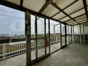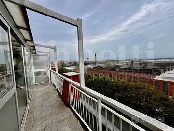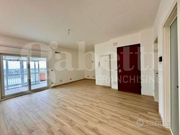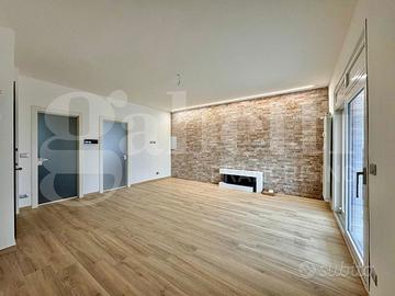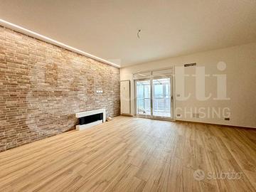 L'appartamento doppia esposizione ed appena totalmente ristrutturato con finiture di pregio è composto da soggiorno living con camino elettrico, angolo cottura ed uscita diretta con serramento scorrevole su terrazzo (in parte verandato) di c.a 15 mq. del quale godere di piacevoli momenti all'aperto con visuale panoramica, camera con cabina armadio, servizio e balcone interno cortile.