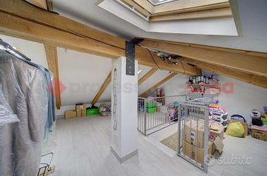 L'appartamento è in ottime condizioni interne ed è composto: ingresso living su ampia sala con cucina a vista, disimpegno, 2 camere di cui una con cabina armadio, doppi servizi e ampio sottotetto open space.