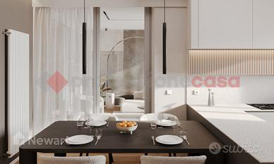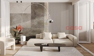 - luminosa zona living con cucina a vista, che rappresenta il cuore pulsante della casa; un ambiente conviviale e accogliente, progettato per unire praticità e stile.
