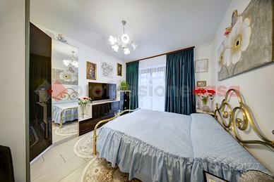 L'appartamento è in perfette condizioni interne, composto da: ingresso, ampio soggiorno con cucina a vista, disimpegno, zona notte, due camere, doppi sevizi oltre terrazzino lato cortile.