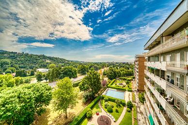 Quartiere NIZZA MILLEFONTI - Agenzia Gabetti Parella vende luminoso appartamento panoramico posto all'ottavo piano di uno stabile signorile con doppi ascensori, giardino condominiale, con affaccio su collina torinese e vista castello di Moncalieri.