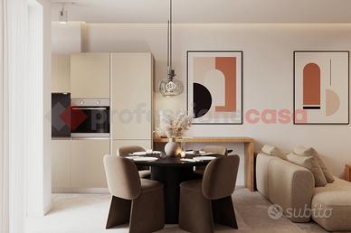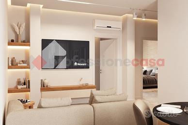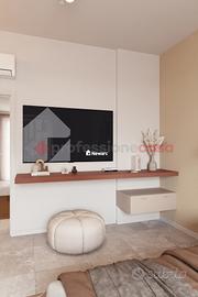 Composto da ingresso living su soggiorno con cucina a vista, 2 ampie camere e servizi igienici, ampio balcone esposto a est e piccolo terrazzino esposto ad ovest accessibile dalla zona giorno.