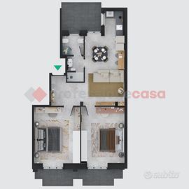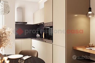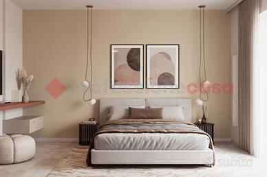 Composto da ingresso living su soggiorno con cucina a vista, 2 ampie camere e servizi igienici, ampio balcone esposto a est e piccolo terrazzino esposto ad ovest accessibile dalla zona giorno.