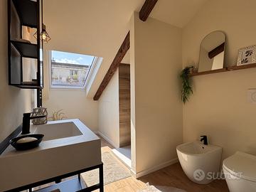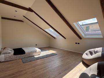 In stabile signorile appena rivisto completamente nelle parti comuni appartamento di ampia metratura situato a due passi dal suggestivo fiume Dora e a 10 minuti "a piedi" dal Quadrilatero Romano. Con una superficie di 180 mq, questa proprietà è stata completamente ristrutturata con materiali di alta qualità e non è mai stata abitata. L'immobile si sviluppa su due livelli, offrendo al piano terzo un ampio ingresso padronale due camere singole una con balcone, una camera doppia con balcone e doppi servizi, mentre una scala interna conduce al piano mansardato abitabile con ulteriori 2 camere di cui una doppia e un ampia zona cucina e un bagno spazioso con 2 lavabi e 2 docce. Inoltre, vi è un locale adiacente di sottotetto grezzo di 90 mq. L'appartamento è dotato di video-citofono, è completamente raffrescato e riscaldato tramite pompa di calore, con infissi in PVC a doppio vetro e pavimenti in parquet e ceramica, ogni camera con attacchi tv. Ottimo da investimento con una remunerativa resa economica grazie alla ristrutturazione volta a creare più ambienti per essere locato a numerosi studenti e provvisto di ogni confort, anche per la vicinanza al centro e ben collegato per le principali università. Ideale anche per chi ha necessita di ampia metratura visto gli spazi ben distribuiti e perfettamente ristrutturati