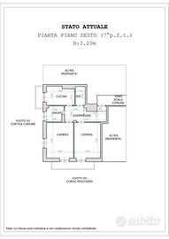 L'immobile è composto da: ingresso, cucina abitabile, due camere da letto, bagno, ripostiglio e due balconi. Completano la proprietà una cantina di pertinenza