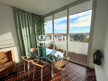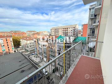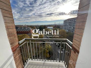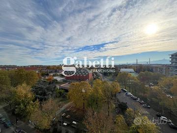 * Piano alto luminosissimo grazie alla presenza di due balconi e di un grande TERRAZZO COPERTO (con angolo lavanderia) dai quali si può godere di una splendida vista panoramica su Superga e sul Monviso;