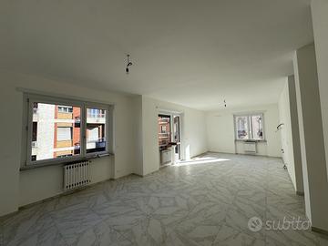 Zona giorno caratterizzata da una ampia e luminosa area cucina salone di circa 40 mq caratterizzata dalla presenza di due ampie finestre e una porta finestra con accesso all'ampio balcone che affaccia su via Monforte.