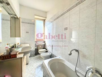 COMPOSIZIONE INTERNA: doppia esposizione est/ ovest, ampio ingresso, soggiorno con cucinino, due camere, servizio, ampio ripostiglio, un balcone ed un TERRAZZINO, cantina al piano seminterrato;