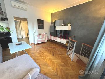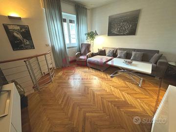 * Appartamento su due livelli completamente ristrutturato nel 2012 con materiali di pregio e curato nei minimi dettagli. Gli infissi interni sono in legno, mentre quelli esterni sono in legno con doppi vetri. La porta d'ingresso è blindata. L'impianto di riscaldamento è centralizzato con termovalvole ed è presente il climatizzatore nel soggiorno e nelle camere da letto.