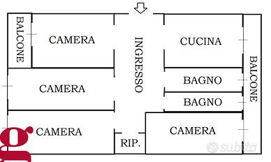 COMPOSIZIONE INTERNA: doppia esposizione, ingresso, cucina abitabile, quattro camere singole, doppi servizi (uno con vasca ed uno con box doccia), due balconi;