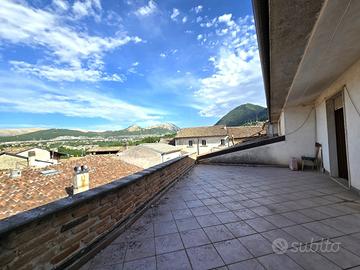 Nella frazione di San Nicola di Tornimparte proponiamo in vendita indipendente cielo-terra nel centro storico del paese. In comoda posizione per poter raggiungere sia il centro storico che la stazione sciistica di Campo Felice, l'unità si compone di due appartamenti con ingressi autonomi. Al piano terra un ingresso nel soggiorno con angolo cottura ed uscita sul terrazzino, bagno di servizio e ripostiglio, due camere da letto ed un ulteriore servizio; al piano secondo ampio ingresso, salone con uscita su ampio terrazzo di 70 mq ca, cucina abitabile con balcone, tre camere ( due matrimoniali ed una singola) e doppi servizi finestrati. Completano la proprietà un garage di 70 mq ca, un magazzino che potrebbe essere sfruttato come taverna ed un locale sottotetto da rifinire.