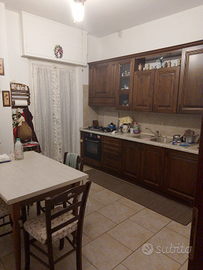 Si accede su un ingresso con armadio a muro che porta a un doppio salone con terrazzo ,segue una cucina abitabile, con terrazzo,il corridoio accompagna all'ampio bagno con vasca finestrato . Una camera da letto matrimoniale con terrazzo che combacia con quello della cucina,una seconda camera matrimoniale con balcone e uno stanzino adibito a sgabuzzino non presente in foto che può essere arredato a studio o terza cameretta singola. Include la proprietà una soffitta di 4mq.