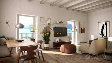 L'appartamento si sviluppa su due livelli, ed è così composto: al secondo piano luminoso soggiorno con angolo cottura con accesso a due balconi, che offrono una vista panoramica sul lago; al primo piano camera matrimoniale con bagno privato.
