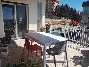 Elegante appartamento al 3°piano con ascensore sito in Via Filippo Paladini a Caltanissetta, in zona servitissima, con molti servizi e negozi. L'immobile, in Cat. A2, è composto da 7 vani: un grande Open Space all'ingresso ti accoglie con modernità e calore allo stesso tempo; un elegante armadio progettato su misura con materiale di pregio, nasconde uno spazio prezioso come ripostiglio e dispensa, un bagno e un'ampia cucina con isola impreziosiscono l'ambiente, curato, elegante ma pratico. La zona notte è composta da una camera matrimoniale, due camerette e un bagno. Progettato con cura e delizioso design, un terrazzo di 20 mq di uso esclusivo, aggiunge valore, grazie al suo affaccio sul panorama meraviglioso, regalando scorci di vera bellezza. L'immobile è elegantemente ristrutturato, con impianti di nuova generazione: caldaia a condensazione, infissi Oknoplast dialta efficienza energetica, parquet in tutti gli ambienti, tranne i due bagni in gres, controsoffitti e pareti con faretti ad incasso, da personalizzarne la luce; termoarredi nei bagni e condizionatori. Il tutto per poterne godere da subito, senza pensare a costi onerosi di ristrutturazione.