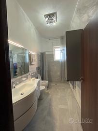 Appartamento ristrutturato in zona centrale (villaggio Kennedy) pianoterra con massetti ristrutturati impianti idrico elettrico, termosifoni in ghisa cappotto interno. 100mq di giardino accessibile da casa Garage Due bagni Cabina armadio in camera bimbi Stanza armadio Cucina Lavanderia Camera da letto