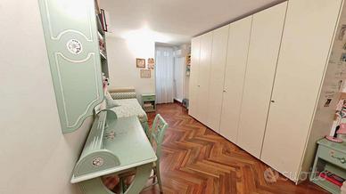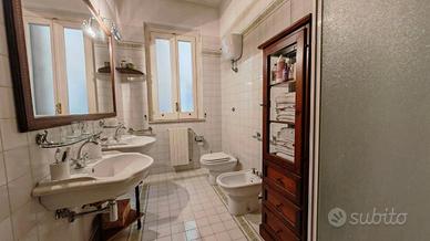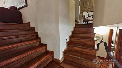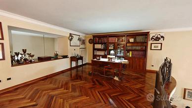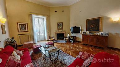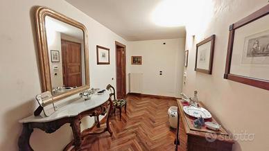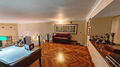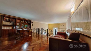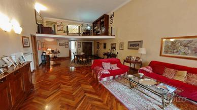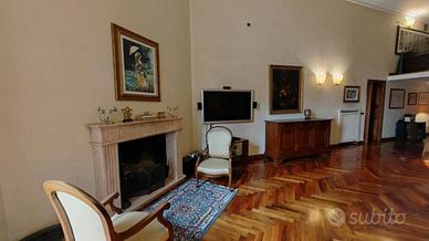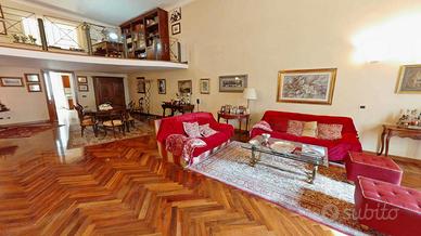 Con una superficie di circa 230 mq, l'appartamento si sviluppa su due livelli offrendo spazi ampi e luminosi. Al piano inferiore troviamo un accogliente ingresso che conduce al vasto soggiorno di circa 80 mq, caratterizzato da un suggestivo camino e balcone con affaccio sulla caratteristica Piazza della Libertà. L'ampia cucina abitabile, con balcone e affaccio sul cortile interno del palazzo, la lavanderia, un bagno e una camera da letto completano questo livello.