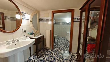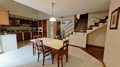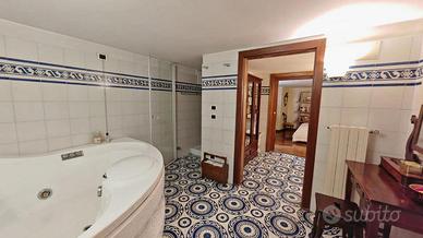 Salendo al piano superiore, ci accoglie uno studio con vista sul soggiorno, una spaziosa camera da letto matrimoniale con bagno en suite dotato di vasca idromassaggio e doccia, e una generosa cabina armadio. L'intera casa è rifinita con parquet di pregio e materiali di alta qualità, creando un'atmosfera di eleganza e raffinatezza.