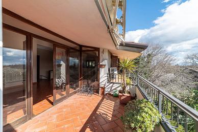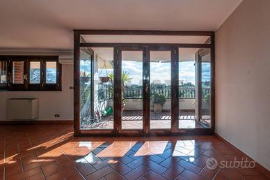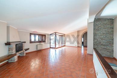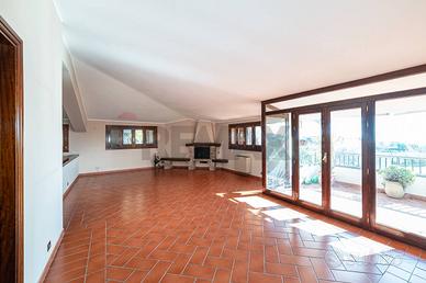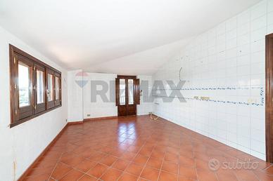 L'ingresso apre su un imponente salone doppio impreziosito da un camino, con cucina abitabile adiacente e affaccio suggestivo sul terrazzino di entrambi gli ambienti. La zona giorno gode di un' abitabilità anche nei punti più bassi (2,10 mt).