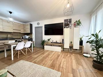 La soluzione è dotata di riscaldamento a pavimento e 30kw di impianto fotovoltaico, cappotto esterno e serramenti in PVC doppio vetro.