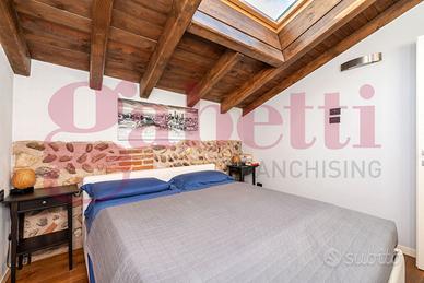 L'appartamento, ubicato al secondo piano, si sviluppa su due livelli collegati da scala interna e si distingue per finiture di pregio e ottimo stato conservativo: parquet in rovere a listoni, travi a vista, serramenti in legno con doppio vetro e impiantistica recente.
