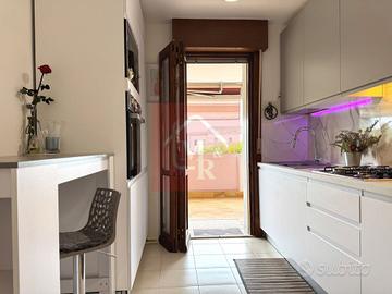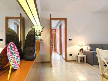 Luminoso APPARTAMENTO TRICAMERE, 105mq, esposto a sud/est, sito al terzo ed ultimo piano con ascensore, in pieno centro composto da: ingresso, ampio soggiorno con generosa terrazza pronta ad ospitare pranzi estivi baciati dal sole, cucina con uscita in terrazza, disimpegno notte, utile ripostiglio, bagno cieco con doccia, bagno padronale finestrato con vasca, due camere da letto con terrazza e camera singola. Riscaldamento autonomo, caldaia recentemente sostituita, climatizzatore, spese condominiali basse.