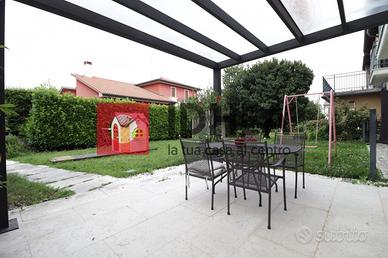 La costruzione e gli impianti mirano ad un buon efficientamento energetico. L'abitazione infine prevede: infissi in vetrocamera con alta ribalta, riscaldamento a pavimento in tutti i locali, impianto di allarme sia volumetrico esterno sia perimetrale, caldaia a condensazione del 2017, porte interne nuove (2023), 3 condizionatori, portico esterno con pompeiana in acciaio a cui si accede direttamente dalla porta - finestra della cucina per piacevoli pranzi all'aperto.