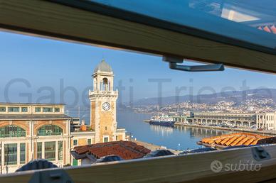 RIVE CON VISTA MARE - Nel cuore pulsante di Trieste, dove l'eleganza delle Rive incontra l'orizzonte del mare proponiamo in un prestigioso palazzo d'epoca risalente al 1826, un immobile di interesse storico-artistico sottoposto a vincolo di tutela da parte del Ministero della Cultura. L'abitazione, ristrutturata nel 2013, è una suggestiva mansarda che si sviluppa tra il terzo e il quarto piano dell'edificio. È composta da un ingresso, un soggiorno di generose dimensioni, con due ampi velux e due finestre, una cucina abitabile e una veranda/lavanderia che aggiunge uno spazio versatile alla casa, due camere da letto, due bagni completi e un ripostiglio. Una scala interna conduce al piano superiore, l'ultimo del palazzo, dove si scopre un ulteriore ambiente vivibile e intimo, ideale come studio, zona lettura o area relax. Il riscaldamento è autonomo. Vista impareggiabile che spazia dall'azzurro del mare al profilo storico dell'Acquario, spingendosi in lontananza fino ai monti che incorniciano il golfo. Vi è inoltre la possibilità di acquistare separatamente un ampio box auto nelle immediate vicinanze. Classe F EPgl 235,31 SEA VIEW IN THE "RIVE" AREA In the beating heart of Trieste, where the elegance of the Rive meets the horizon, we offer for sale an apartment of historical and artistic interest in a prestigious historical building dating back to 1826, subject to protection by the Ministry of Culture. The apartment, renovated in 2013, is a charming attic that extends between the third and fourth floors of the building. The layout includes an entrance hall, a spacious living room featuring two large skylights and two windows, an eat-in kitchen, and a functional veranda/laundry room. The property includes also two bedrooms, two full bathrooms, and a storage room. An internal staircase leads to the upper floor--the building's top level--offering an additional intimate living space, perfect for a study, reading corner, or relaxation area. Heating is ind