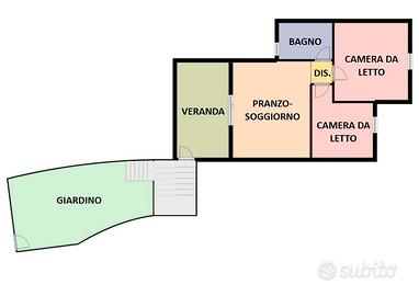L'interno dell'unità immobiliare è costituito dal soggiorno con angolo cottura, dal bagno finestrato e da due camere da letto, di cui una matrimoniale