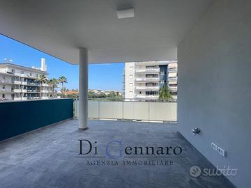 L'appartamento proposto nell'annuncio si trova al secondo piano, servito da ascensore, ed al suo interno è composto da ingresso su zona giorno con angolo cottura, disimpegno, due comode camere da letto matrimoniali e due bagni, entrambi con cabina doccia. Esternamente dispone di un ampio terrazzo coperto accessibile dal soggiorno, perfetto da vivere durante la bella stagione, e di un balcone per la zona notte collegato ad entrambe le camere. Triplice esposizione, per ambienti luminosi durante tutta la giornata.
