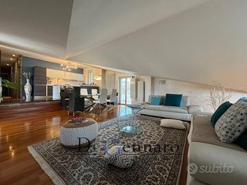 Materiali ricercati e di pregio in tutti gli ambienti, parquet in ogni stanza ed arredamento di design.