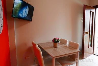 Caratterizzato da un ampio terrazzo abitabile e da un posto auto numerato, questo immobile vanta uno stile moderno e una cura meticolosa dei dettagli. L'ingresso si apre su un luminoso soggiorno con zona pranzo e angolo cottura completo di frigorifero spazioso con cella freezer separata e lavastoviglie. Le due camere da letto includono una camera doppia e una padronale con letto matrimoniale, oltre a un letto a castello aggiuntivo per ospiti o familiari. Il bagno, finestrato e spazioso, è dotato di una comoda cabina doccia a muro.
