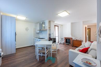 L'immobile è così suddiviso: salone con camino ed uscita sul terrazzino, angolo cottura, disimpegno, camera da letto matrimoniale, cameretta con uscita sul terrazzino e bagno.