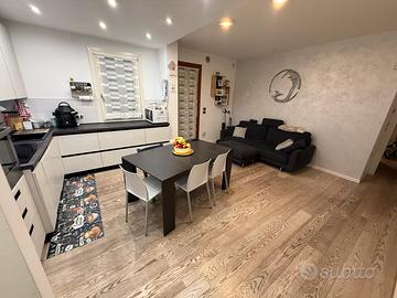 Vendo in un contesto tranquillo e molto accogliente appartamento al piano terra di 93mq commerciale e 65mq calpestabili composto da cucina e soggiorno di circa 25mq, disimpegno, 1 camera matrimoniale di 14.5mq, 1 cameretta, 1 bagno con vasca e un altro bagno con wc e doccia. All esterno si trova un giardino privato di 284mq con impianto di irrigazione, ci sono inoltre 3 vani esterni che fungono da ripostigli. In fine comprende un garage di 21mq e un posto auto esterno.