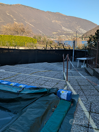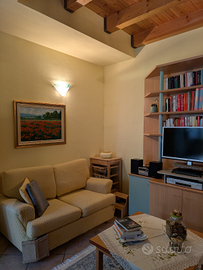 Vendo appartamento trilocale in residence con piscina. Zona Lago di Endine(Bergamo). Travi a vista in tutto l'appartamento. Vendo completamente arredato. Servizio compreso di wi- fi, aria condizionata. Vista piscina. Box compreso. Riscaldamento autonomo. Classe energetica E. Vendo a 105,000 trattabili. NO AGENZIE.