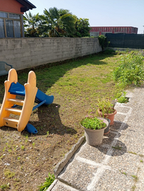 Propongo in zona tranquilla e vicina a tutti i servizi porzione di casa libera in 3 lati tutta su un piano composta da: ingresso ampia zona giorno con cucina a vista, due camere da letto,bagno giardino che circonda tutta l abitazione di circa 200mq e locale autorimessa.Riscaldamento autonomo a metano.