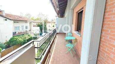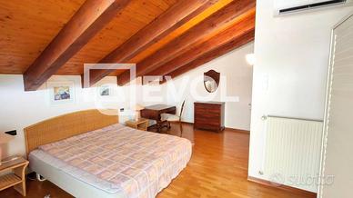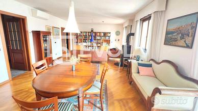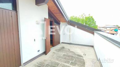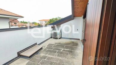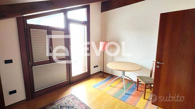 Rif: GI087 Classe energetica: E Elegante appartamento su due livelli con ampie terrazze zona Teatro, Udine In una riservata strada privata in Via Sistiana, a due passi dal Teatro, interna a Viale Trieste proponiamo in vendita un raffinato appartamento su due livelli, recente e dalle generose metrature, ideale per chi cerca spazi ben distribuiti. Lingresso si apre su un ampio e luminoso soggiorno, con due porte finestre e una finestra, valorizzato da una stufa e da una splendida terrazza che si sviluppa per tutta la lunghezza della zona living. La cucina, separata da unelegante porta scorrevole, si affaccia sul lato opposto del condominio ed è servita da un ulteriore grande terrazzo con vano caldaia chiuso. Sempre al piano troviamo un pratico disimpegno con armadiatura su misura, una stanza versatile ad uso studio o camera e un bagno finestrato con doccia, anch'essi con la possibilità di accedere alla terrazza. Una scenografica scala in legno conduce al piano superiore, dove si sviluppa la zona notte caratterizzata dalle travi a vista, due camere, entrambe con accesso diretto a una terrazza solarium. La camera padronale, ampia e suggestiva, mentre la seconda stanza, leggermente più raccolta, mantiene comunque vivibilità. Entrambe dispongono di comodi vani ripostiglio, uno dei quali dotato di cassaforte a muro. Completa il piano un elegante bagno padronale con accesso a unulteriore terrazza, e un ulteriore piccolo vano ripostiglio. A completare la proprietà: una cantina doppia al piano interrato, un garage doppio automatizzato con telecomando e codice e un posto. Soluzione ideale per chi desidera vivere in una zona tranquilla ma centrale, con tutti i servizi a portata di mano.