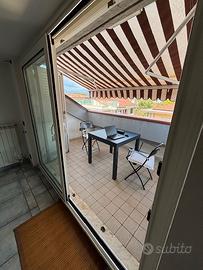 Appartamento mansardato, di 120 mq. circa, posto al secondo ed ultimo piano di una palazzina di 14 appartamenti. Completamente ristrutturato nel 2005. Composto da tre camere da letto, ampio living, sala pranzo con zona cucina, 2 bagni, 4 terrazze a tasca vivibili. Autorimessa al piano seminterrato di circa 30 mq e disponibili posti auto condominiali. Impianto di riscaldamento termoautonomo con caldaia a condensazione; Impianto aria condizionata nelle camere da letto; Tende da sole. Compresi nel prezzo tutti gli arredi su misura, con elettrodomestici . Vendita da privato senza spese di intermediazione.