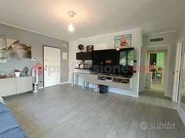 Vaprio d'Adda, in recente palazzina di poche famiglie, signorile tre locali con taverna, portico, giardino e box doppio.