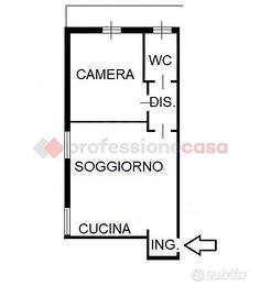 Composizione: ingresso, soggiorno con cucina a vista, disimpegno, camera da letto e bagno.