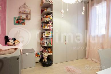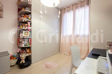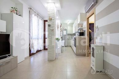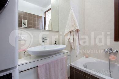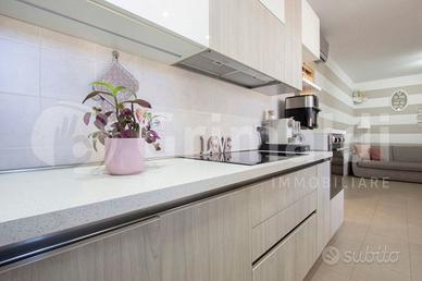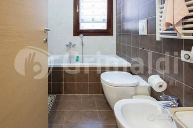 Questo bellissimo appartamento è parte di una palazzina costruita nel 2015 al centro del paese ed è posto al piano primo. E' composto da Tre locali con doppi servizi, cantina, box e posto auto coperto. ingresso in soggiorno, angolo cottura aperto, terrazzino, disimpegno zona notte, bagno padronale con finestra, camera singola, camera matrimoniale con bagno dedicato con finestra. Esposizione tripla, climatizzatore, zanzariere, riscaldamento autonomo, infissi esterni in legno con doppi vetri, parquet nella zona notte; palazzina con pannelli solari e rampa box riscaldata. Consegna entro massimo 31 luglio 2026