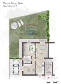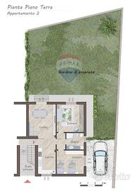 Al *piano terra* troverai due *appartamenti trilocali* di *circa 72 mq ciascuno*, entrambi con accesso diretto a un *giardino privato di 150 mq*.