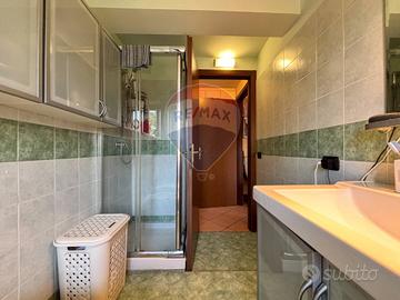 Dalla zona giorno/notte si accede al bagno tramite disimpegno in cui ogni centimetro è stato sfruttato al meglio: qui infatti si trova un grande mobile al cui interno si nasconde la lavatrice e numerosi ripiani per stipare oggetti di ogni tipo.