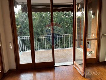 Ingresso su grande soggiorno con accesso a terrazzo vivibile affacciato sul verde