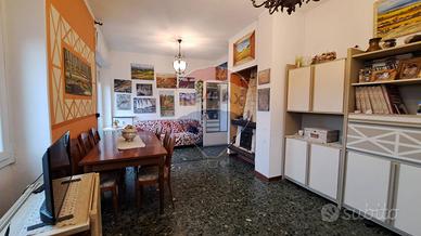 La distribuzione interna è funzionale e gli spazi, tipici delle costruzioni dellepoca, risultano ampi, lineari e facilmente arredabili. Limmobile è composto da: ingresso, soggiorno con balcone, cucina abitabile, due camere da letto e doppi servizi. Completa la proprietà unampia cantina.