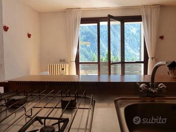 L'ampiezza del soggiorno, con corner-cucina a vista, e del lungo balcone sui due lati dell'edificio rendono la proprietà piacevolmente abitabile ed interessante per la posizione centrale, l'esposizione, il panorama, non ultimo la vicinanza agli impianti di risalita.