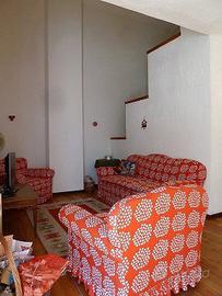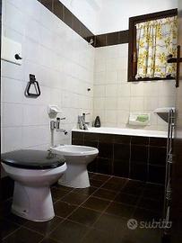 Riscaldamento centralizzato con termosifoni, assistito da stufa a legna-pellet in posizione centrale nel soggiorno.