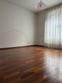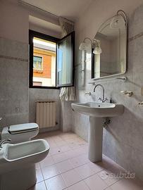 Appartamento lungo il viale Castelli. In un edificio di sei unità si propone questa superficie di 85 mq. che comprende corridoio d'ingresso, soggiorno di 16 mq., cucina con ripostiglio, due camere con bagno. Vi è unita una cantina di circa 8 mq. al seminterrato. L'appartamento è posto al primo piano ed è in buon ordine, vuoto, con nuovi serramenti, termoautonomo a gas metano, pavimenti in ceramica per la zona giorno e in parquet per le camere, bagno ben sistemato. L'edificio è inserito in un'ampia superficie di prato, è mantenuto con ordine ed il tetto è stato revisionato. La proprietà fruisce di un posto auto e di un piccolo settore di terreno ad uso di orto. La posizione è centrale e ben esposta, a 300 metri dalla stazione ferroviaria.