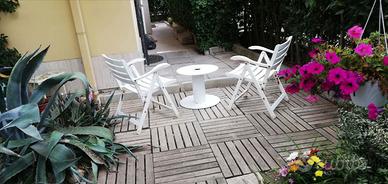 L'ingresso si apre su un ampio soggiorno, luminoso e ben distribuito, che conduce al cucinotto abitabile, dal quale si accede al giardino in parte pavimentato, dove poter pranzare all'aperto e prendersi cura di piante bellissime per chi ha il pollice verde!