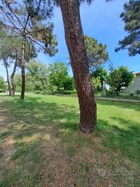 Parcheggio interno in giardino alberato.